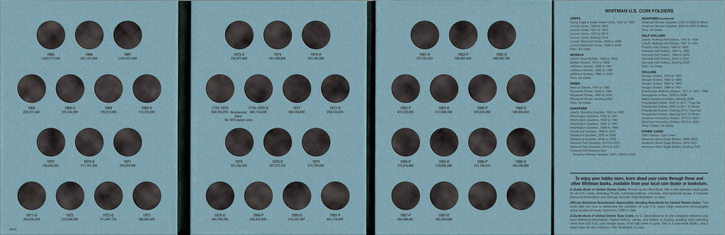 The Whitman U.S. Washington Quarter Coin Folder 1965–1987 #9040 provides a dependable and organized way to build your quarter collection. Perfect for both new and seasoned collectors, this sturdy folder offers secure storage and display of your coins. Coins not included.