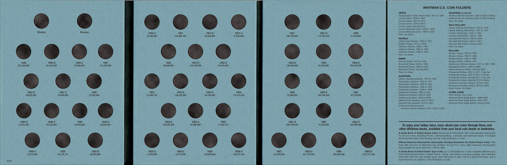 The Whitman U.S. Roosevelt Dime Coin Folder 1946-1964 #9029 is a trusted and attractive way to collect and display silver Roosevelt Dimes. Perfect for both new and experienced collectors, it offers organized storage and helpful reference details. Coins not included.