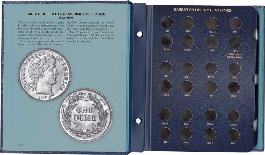 An elegant, high-quality album designed to preserve and display the complete Barber Dime series. Holds up to 6 total pages. No coins included.